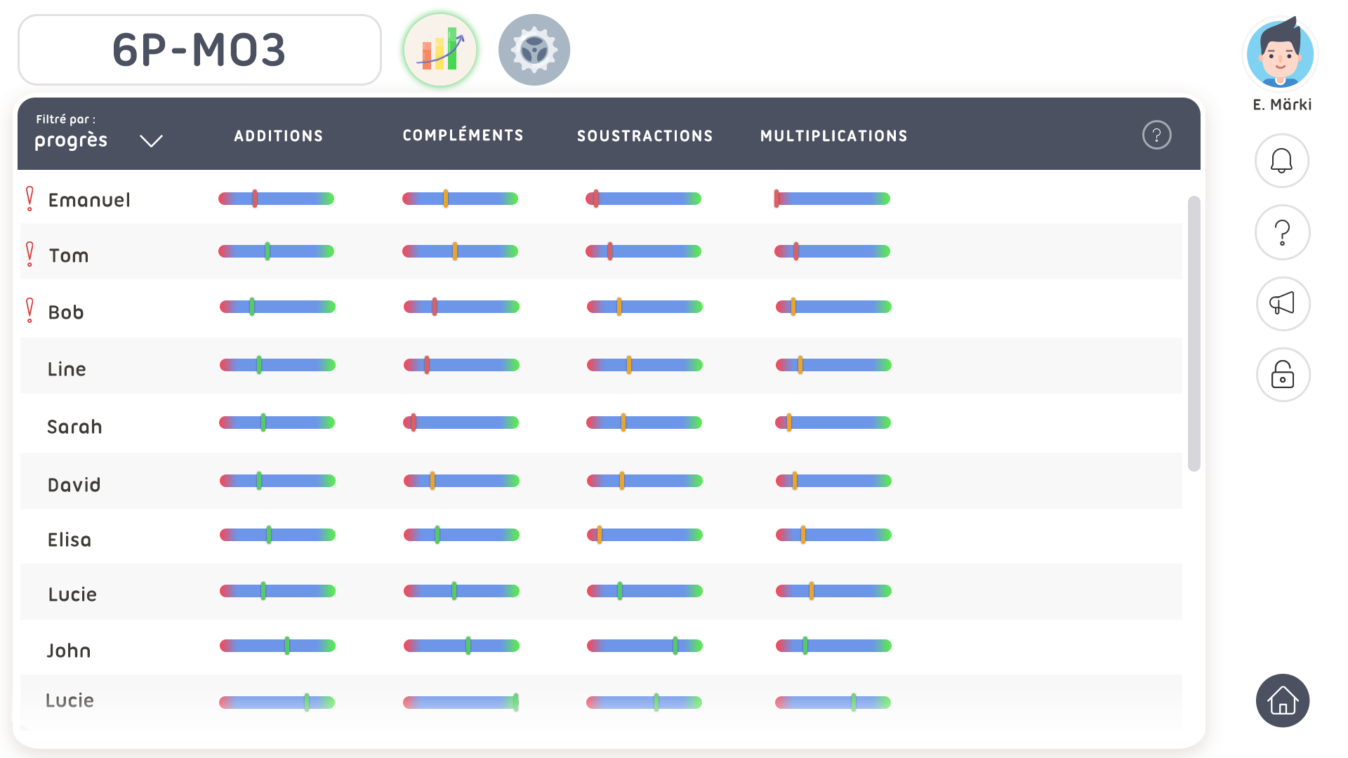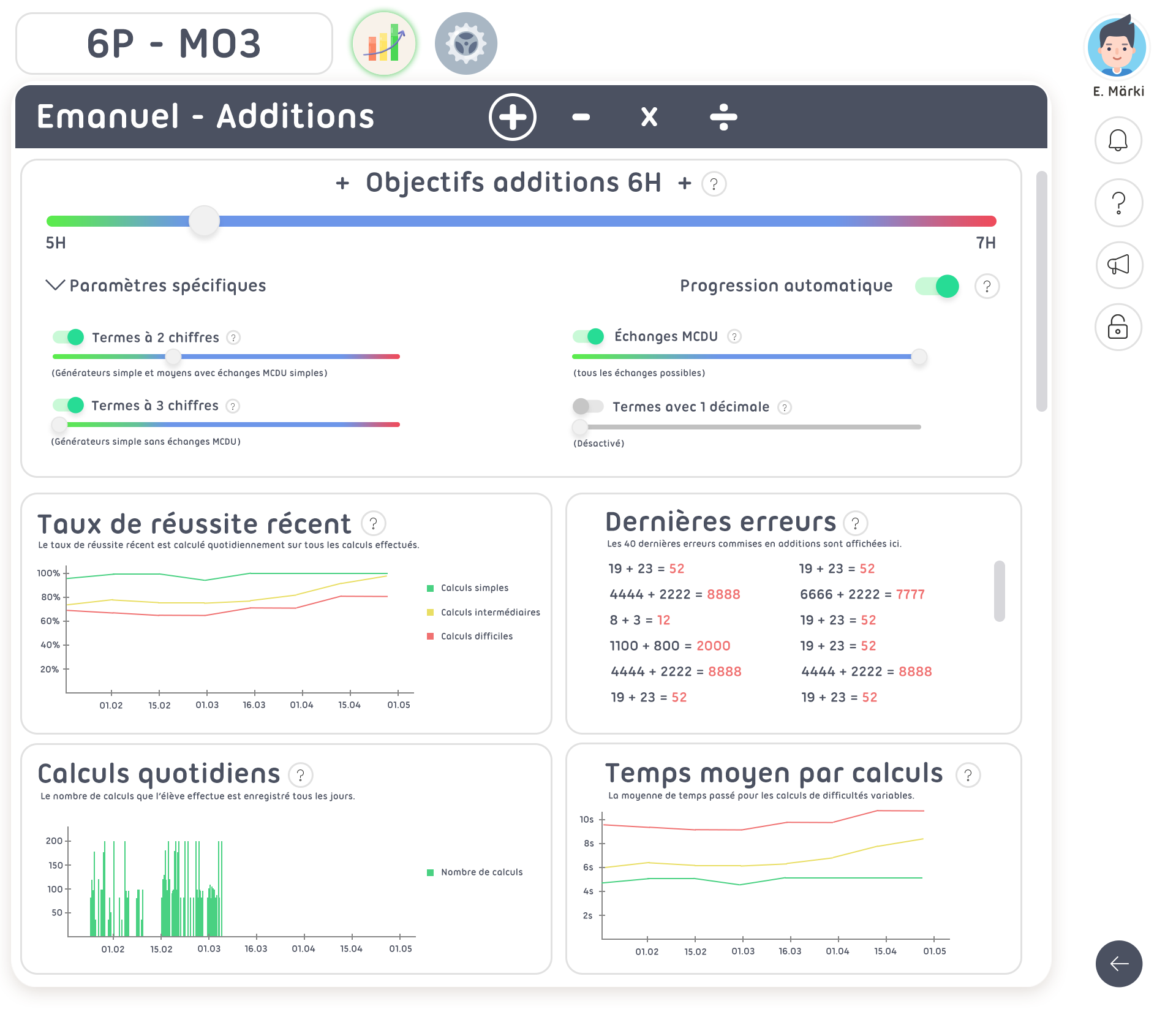 - Il est possible de consulter les dernières erreurs de chaque élève pour chaque opérateur.