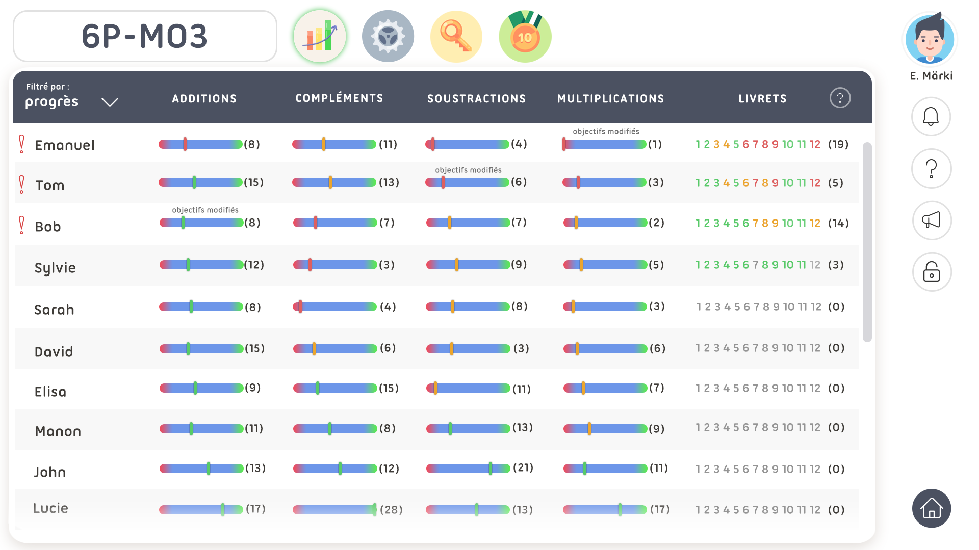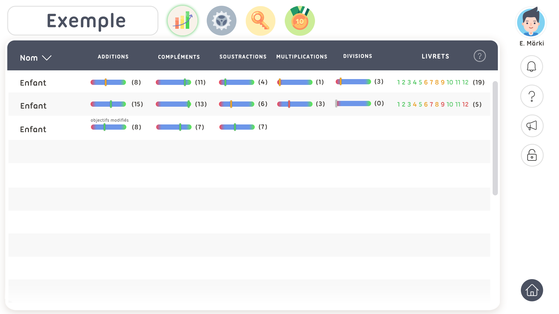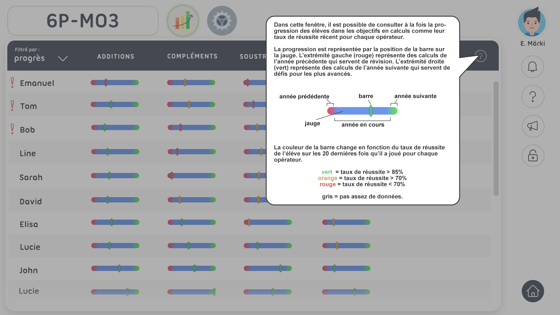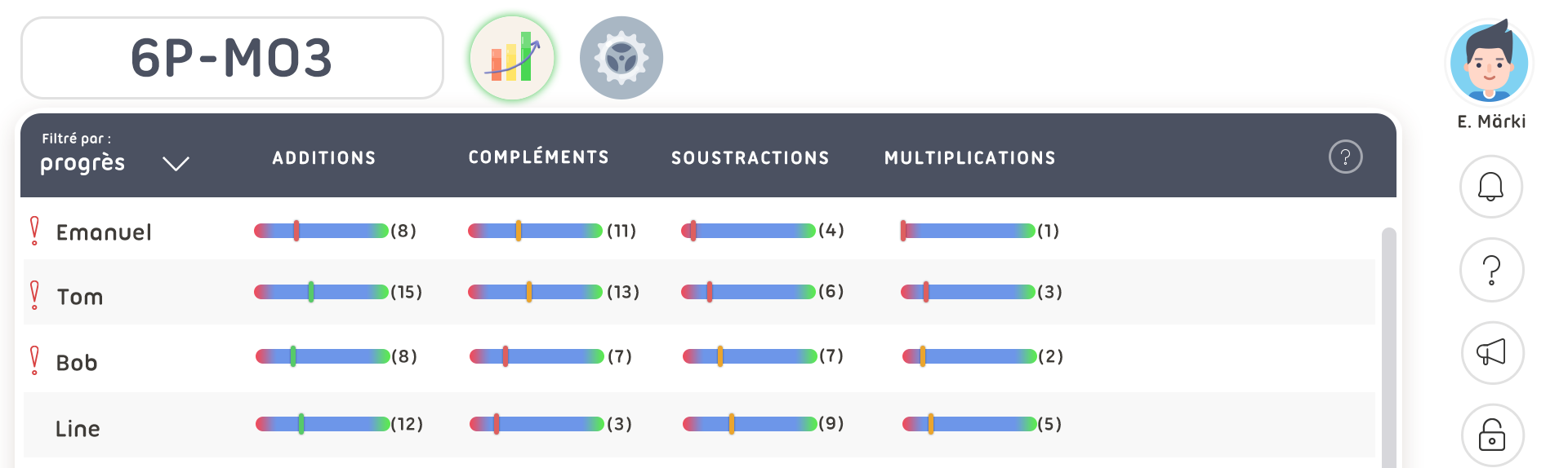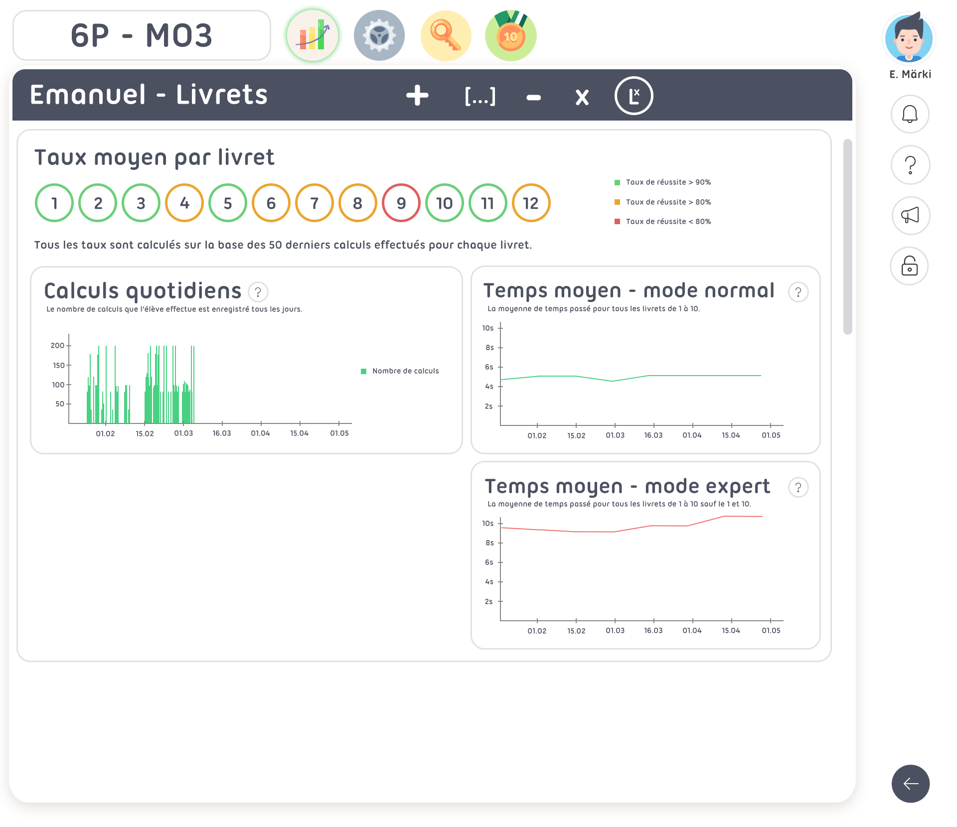 - Il est possible de consulter les performances tendancielles des élèves pour chaque opérateur.