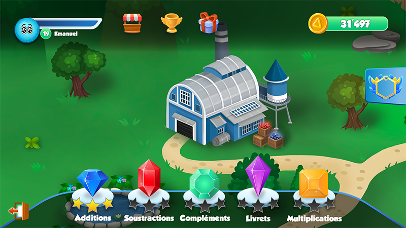 - Des animations en fin de partie rendent la progression de l’élève et l’explication des gains plus clairs.
