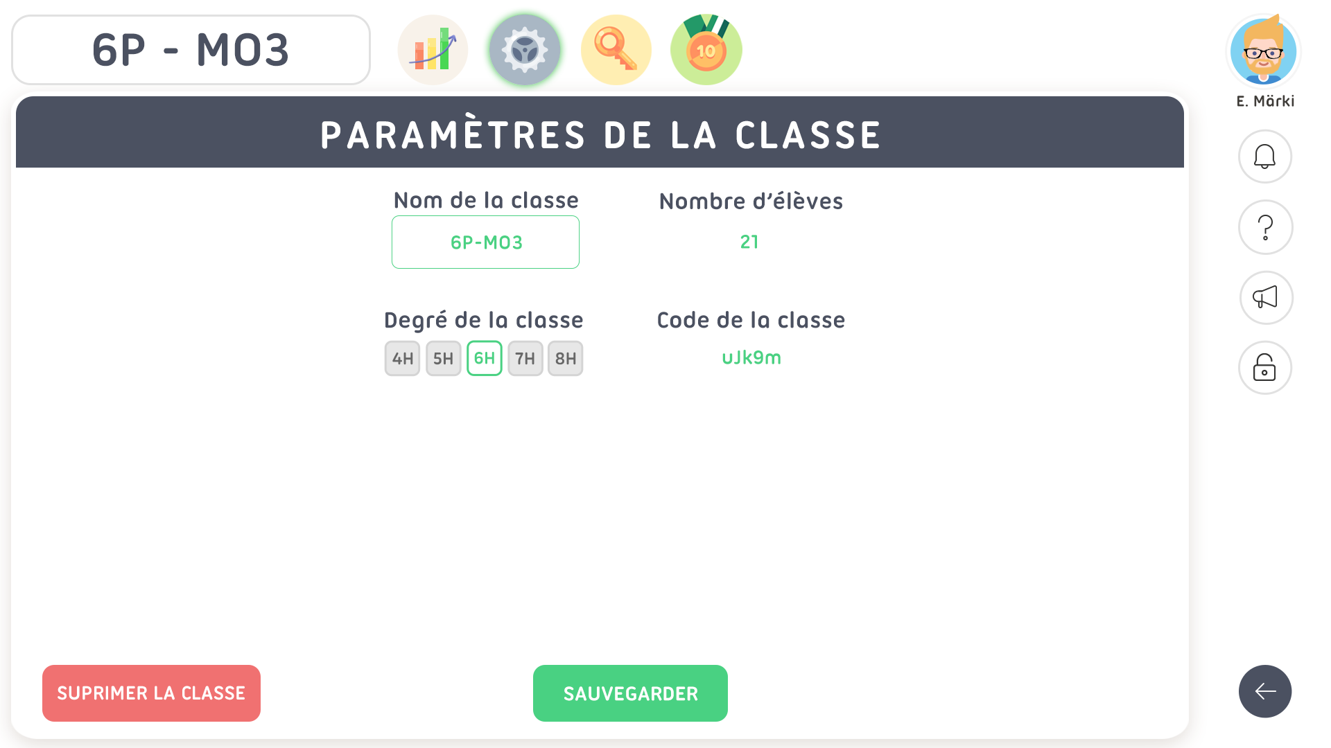 Pour les enseignants, nous avons ajouté un bouton « copier » pour plus rapidement copier le code de classe.