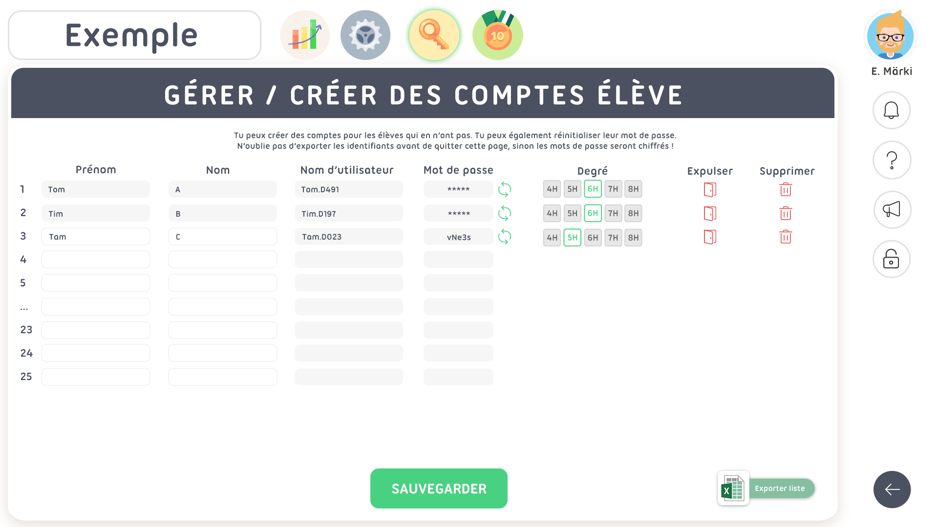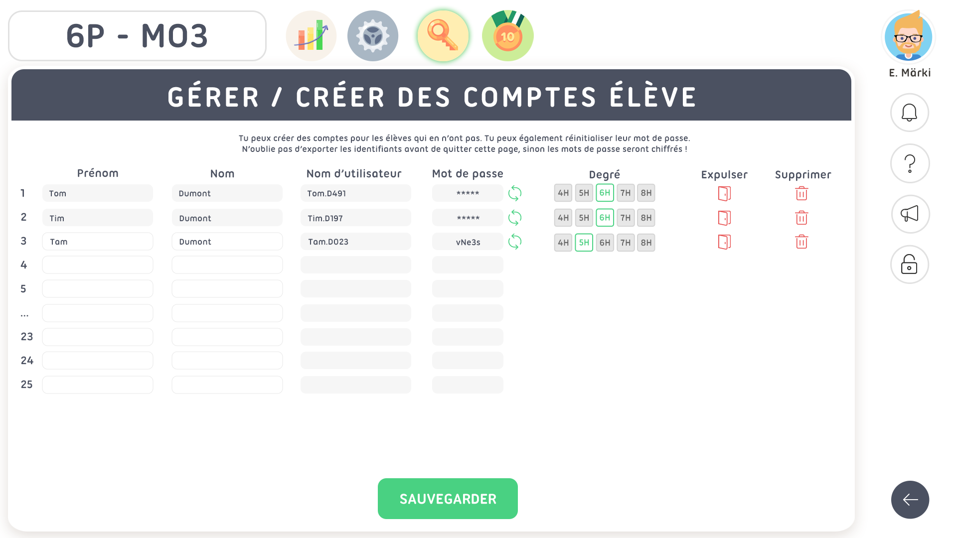 Il est désormais possible de se connecter en tant qu’enseignant, de créer une classe et d’ajouter des élèves à la classe.