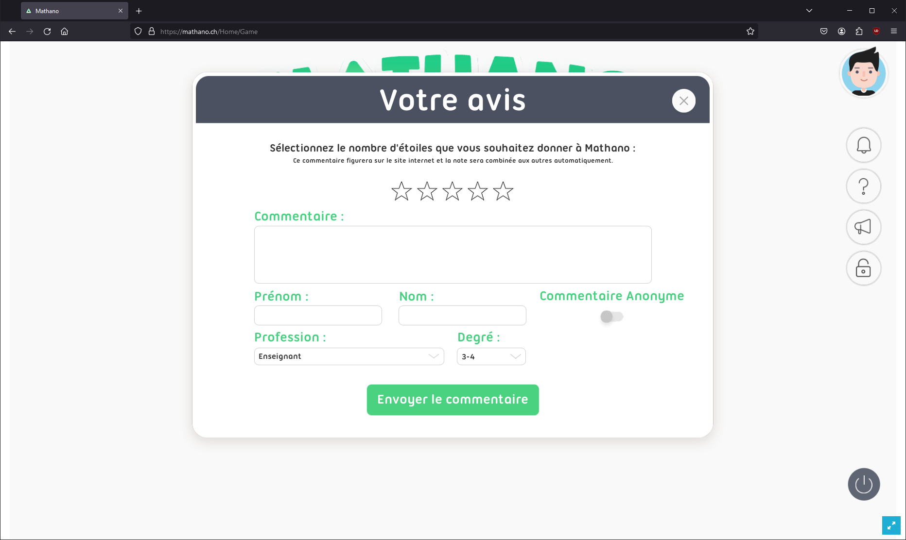 Lorsqu’ils cliquent sur l’icône, Mathano leur demande d’obtenir différentes récompenses de niveau.